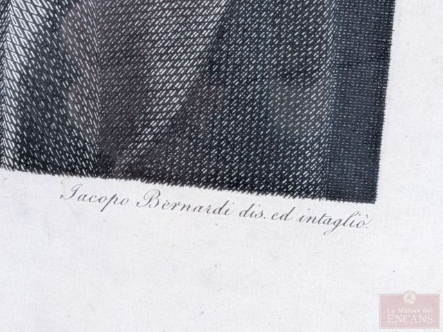 Jacopo BERNARDI - Eau forte mesurant 13x10 pouces représentant la Vierge à l'enfant de Léonard de Vinci dans un joli encadrement
