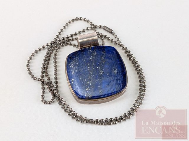 Lot # 142 - Lapis-lazuli monté en pendentif avec argent, mesurant 1.5 pouces de largeur
