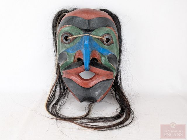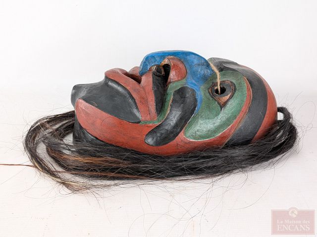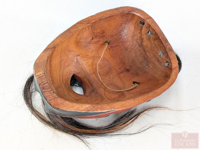 Lot # 59 - Masque sculpté sur bois et peint à la main avec crin de cheval - mesurant 15 pouces de hauteur