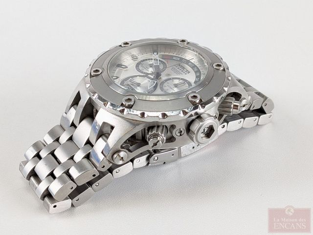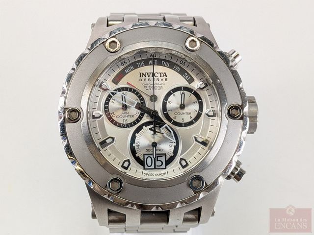 Lot # 231 - Montre Invicta Reserve chronographe avec date et jour en acier inoxydable, mouvement suisse au quartz, mesurant 56 millimètres avec sa couronne vissée et signée, fonctionnelle