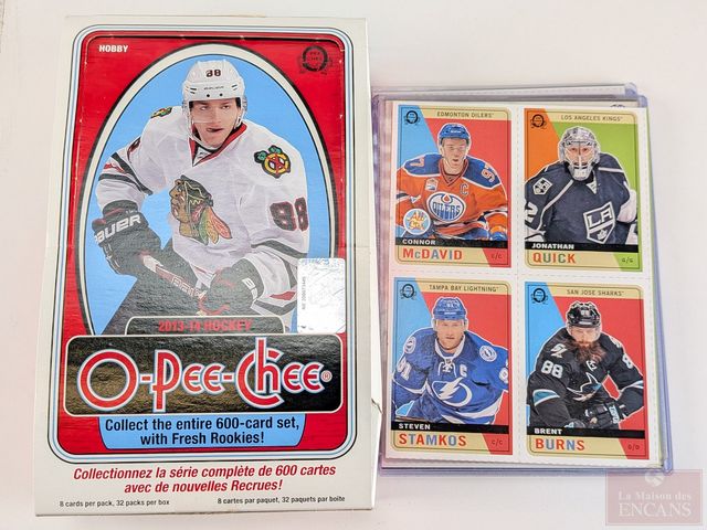 Lot cartes de hockey fonds de boites O-Pee-Chee, dont Connor McDavid, Patrick Kane, Alexander Ovechkin, Carey Price, P.K. Subban, Steven Stamkos et autres, peuvent être gradées chez PSA