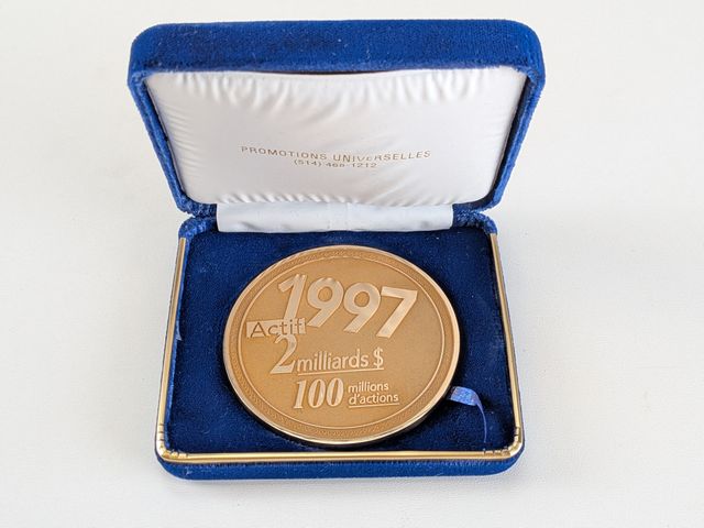 Médaille en or 10k Le fond de solidarité 1997, célébrant deux milliards de dollars d'actifs et mesurant 2.75 pouces de largeur
