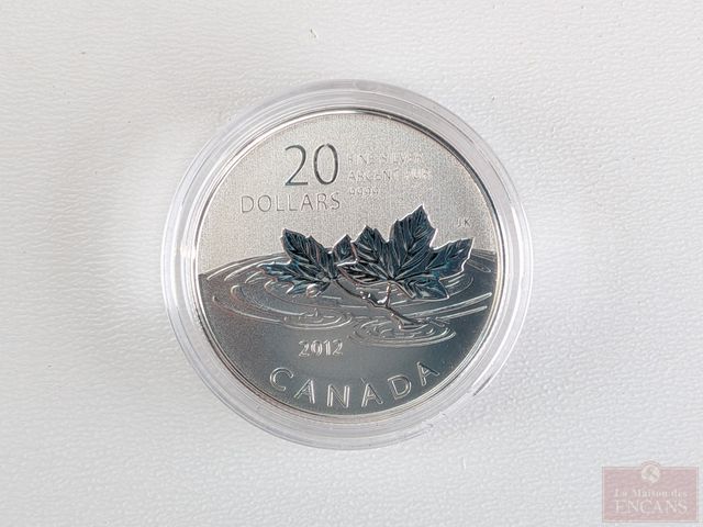 Pièce canadienne de vingt dollars 2012 en argent pur 9999, encapsulée, sans taxes