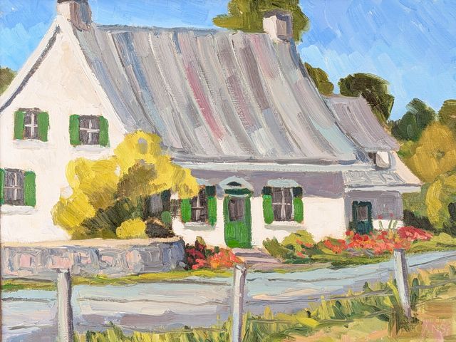 Denise DESJARDINS- Huile sur toile signée, mesurant 16x20 pouces et titrée Vieille maison, boulevard Gouin