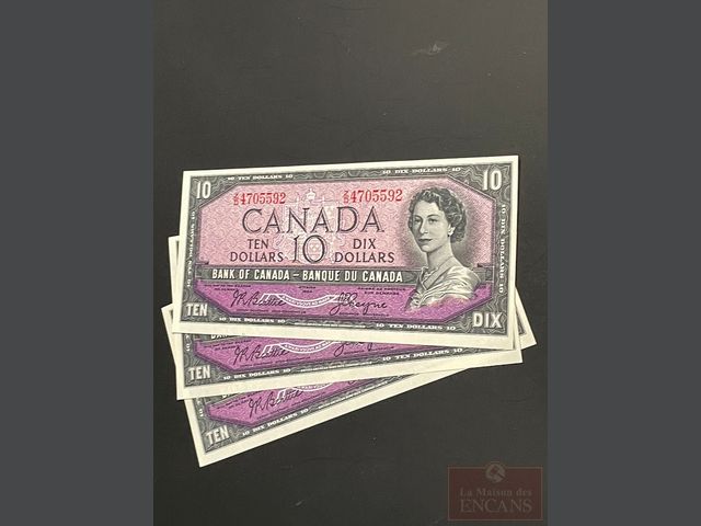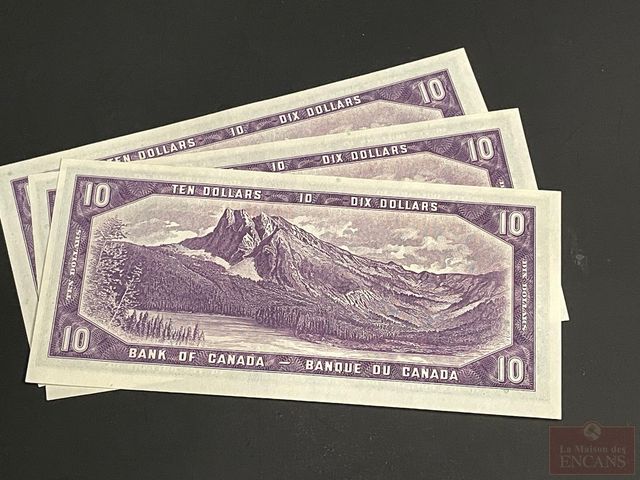 Lot # 163 - Rare 3 billets de 10 dollars numéros de série consécutif