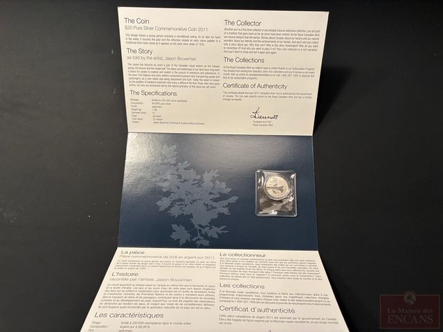 Lot # 62 - Pièce de $20 2011 en Argent pur ‘Canot’ PAS DE TAXE