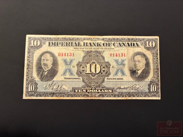 Billet de $10 1933 (date plus rare) Large ‘Imperial Bank’ (en bonne condition)