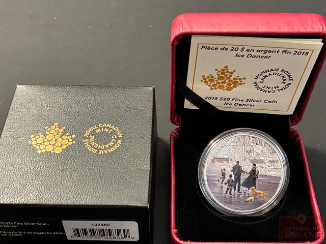 Lot # 47 - Pièce de $20 2015 plus d’une once d’Argent pur ‘Ice dancer’ colorée PAS DE TAXE