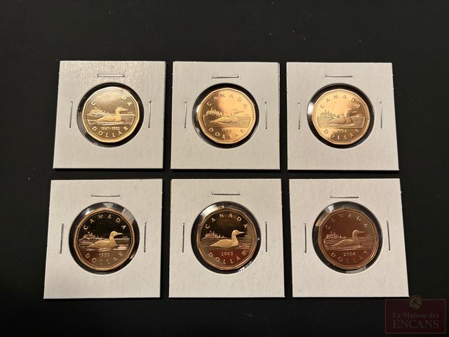 Lot # 90 - 6 Pièces DE $1 Épreuve MINT1992-1993-1994-1995-2003-2004