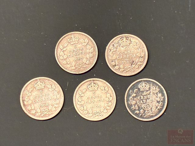 Lot # 147 - Lot de 5 Pièces de 5 Cents 1902-1903-1904-1905-1908 en Argent