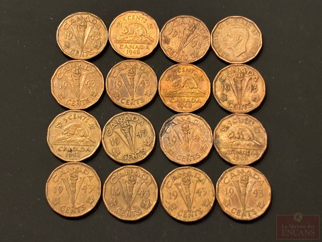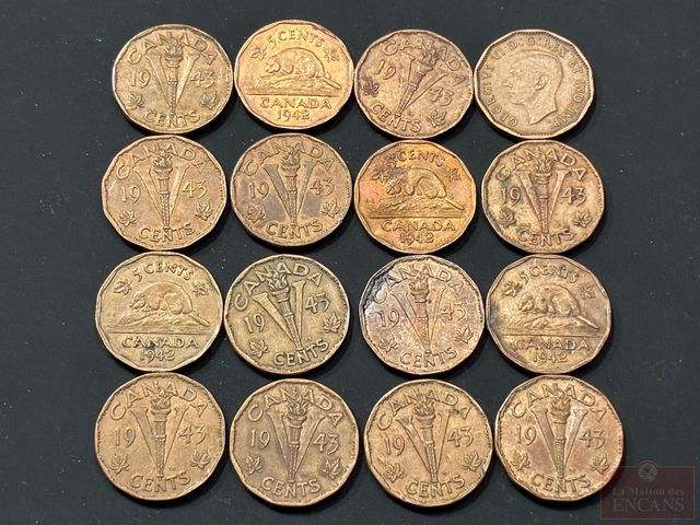 Lot # 11 - Lot de 5 Cents George VI (brun) 1942 et 1943 (plus rare)