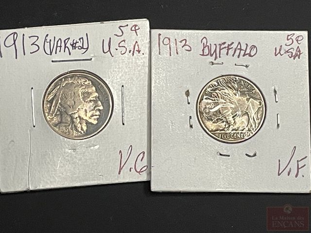 2 variétés différantes de la pièce de 5 cents Buffalo 1913