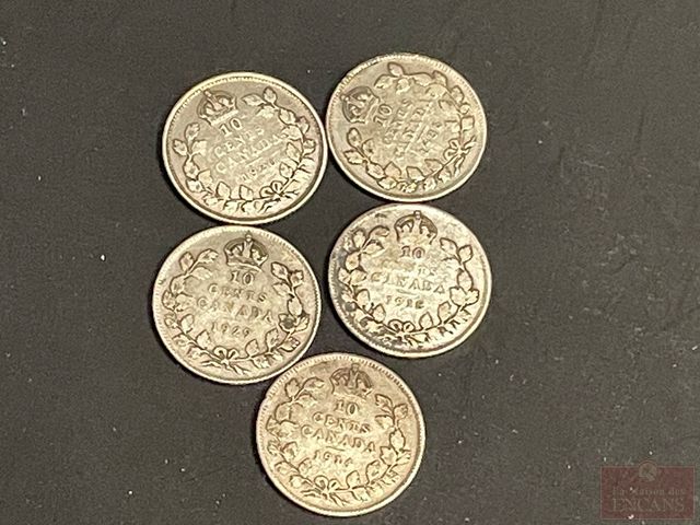 Lot # 185 - 5 pièces de 10 cents 1914, 1918, 1920, 1929, 1936