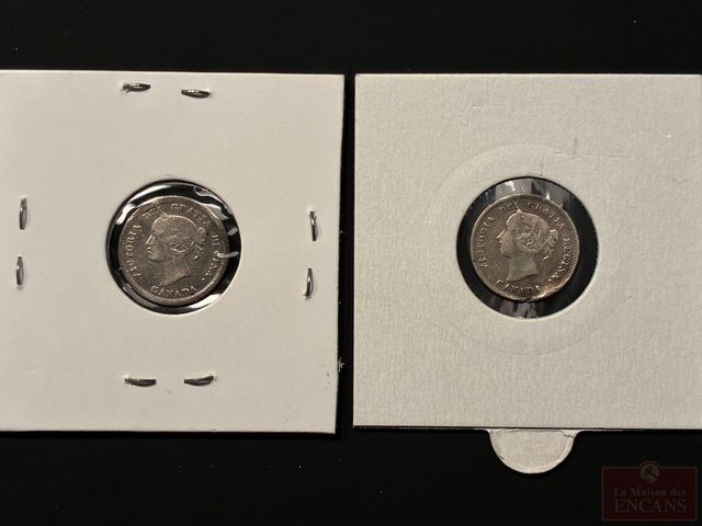 Lot # 130 - 2 Pièces de 5 Cents 1870 et 1886 en Argent Victoria