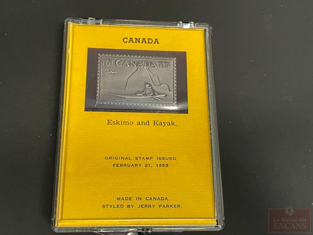 Timbre en argent .999 Eskimo en kayak SANS TAXE
