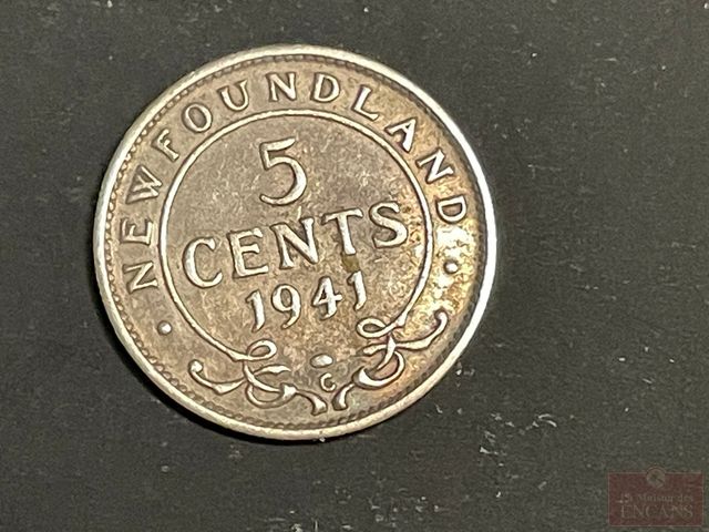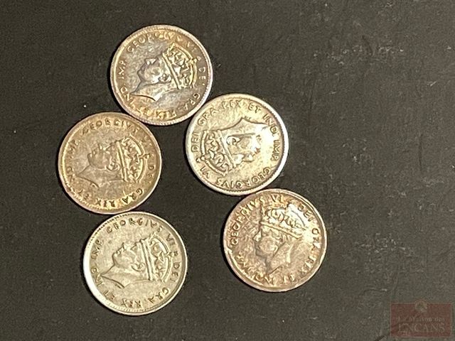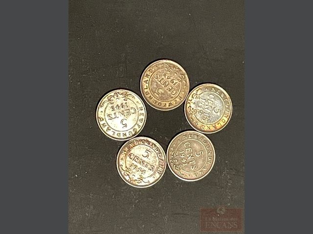 Lot # 186 - 5 pièces de 5 cents de Terre Neuve 1941, 42, 43, 44, 45 tous en argent .925