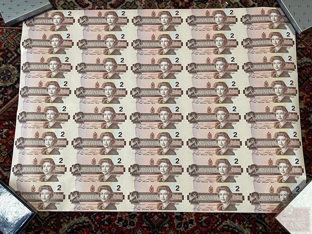 Lot # 234 - Feuille de 40 billets de 2 dollars 1986 non coupé