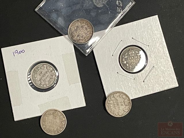 Lot # 317 - 5 pièces de 10 cents 1899, 1900, 1909, 1917, 1918