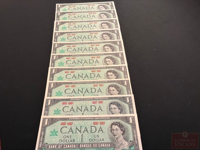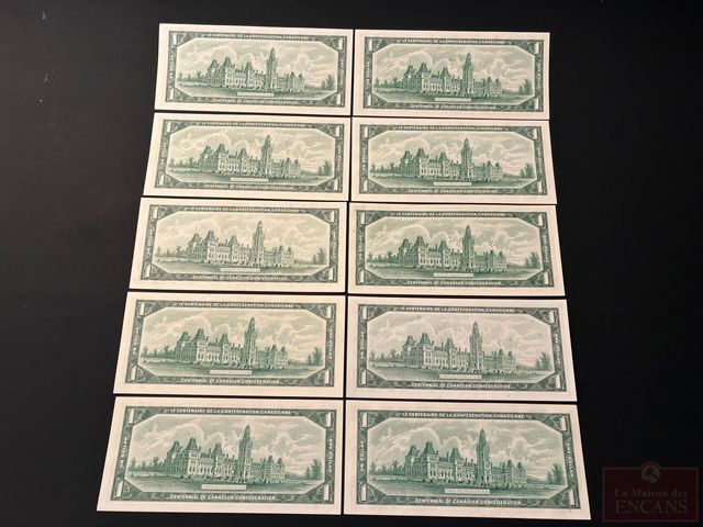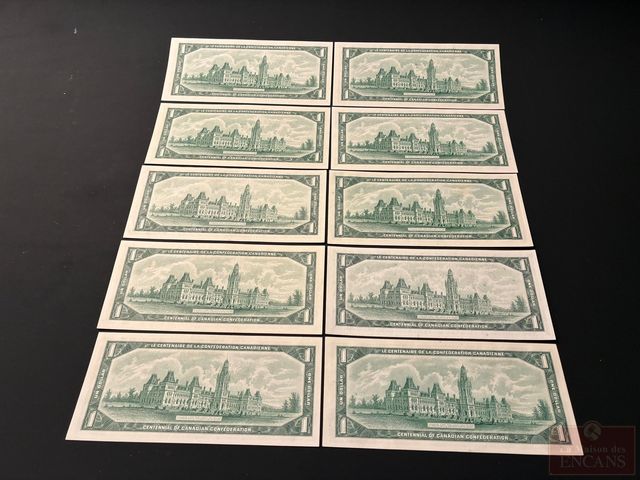 Lot # 14 - Lot de 10 Billets de $1 1867-1967 incirculés UNC