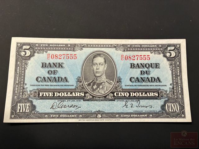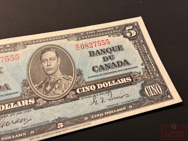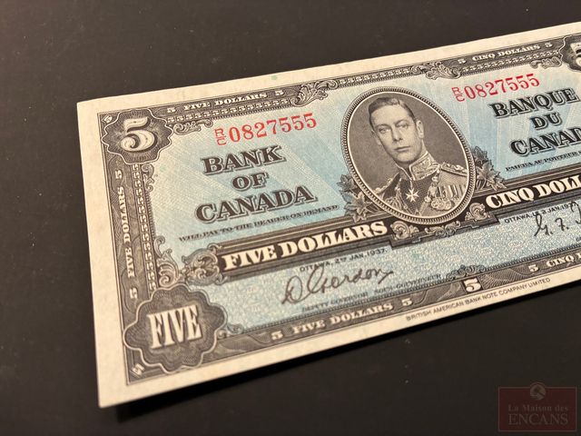 Série de 6 Billets de $5 1937 avec numéros consécutifs AU/UNC (superbe condition et très rare)