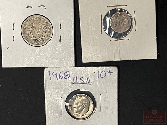 Lot de pièces Américaine 1 pièce de 3 cents, ½ pièce de 10 cents1870 et autres