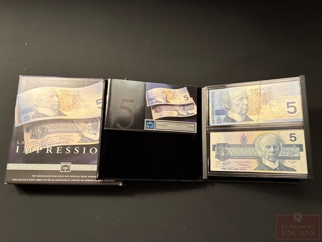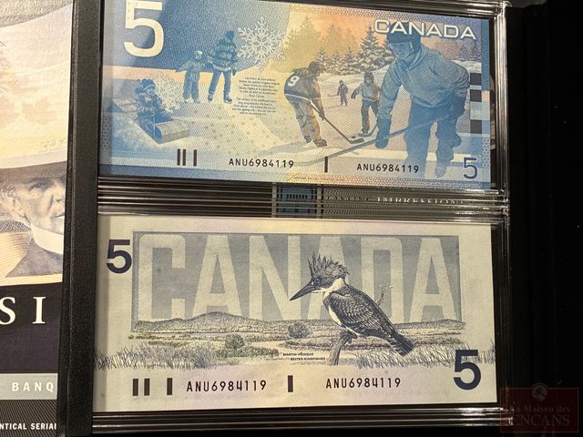 Lot # 112 - Ensemble dernière ’Impressions VIVES’ de 2 Billets de $5 1986-2002 avec le même numéro de série (scellé)