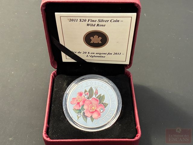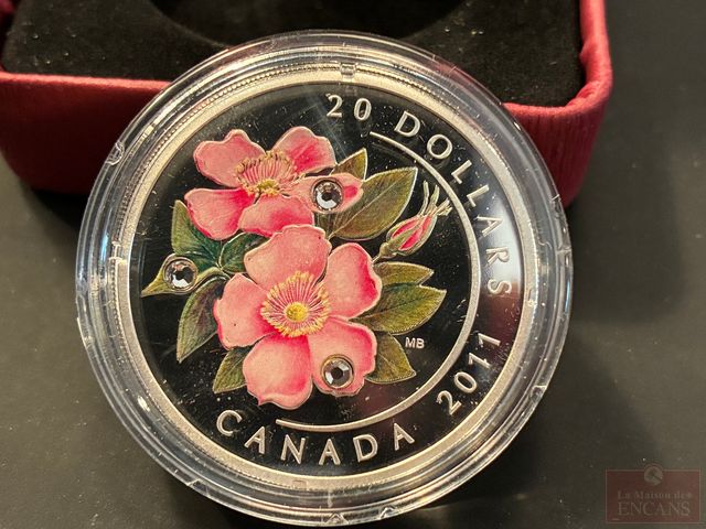 Pièce de $20 2011 plus d’une once d’Argent pur ‘L’églantine’ avec pierres Swarovski PAS DE TAXE