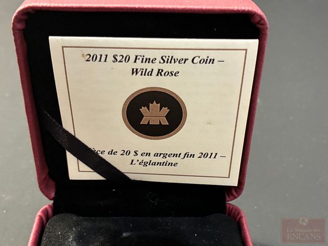Lot # 46 - Pièce de $20 2011 plus d’une once d’Argent pur ‘L’églantine’ avec pierres Swarovski PAS DE TAXE