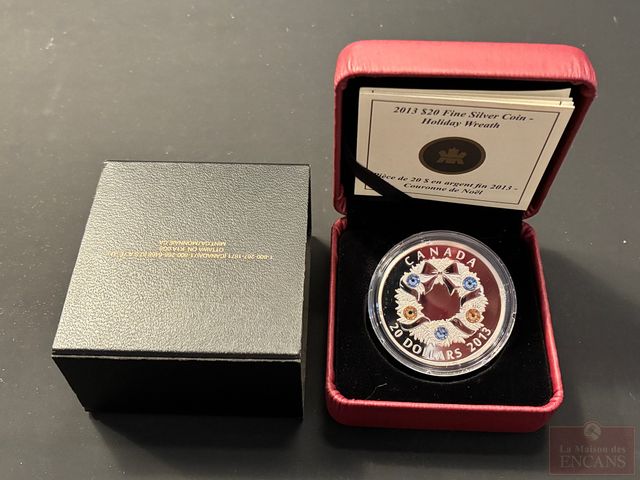 Lot # 48 - Pièce de $20 2013 plus d’une once d’Argent pur ‘Couronne de Noël’ avec pierres Swarovski PAS DE TAXE