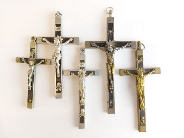 Lot # 13 - Lot religieux varié comprenant chapelets anciens - crucifix dont un fait en clous de forge - et autres VENDU
