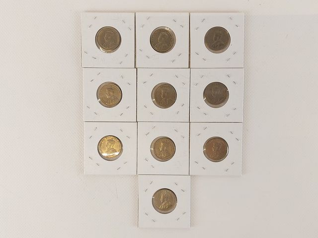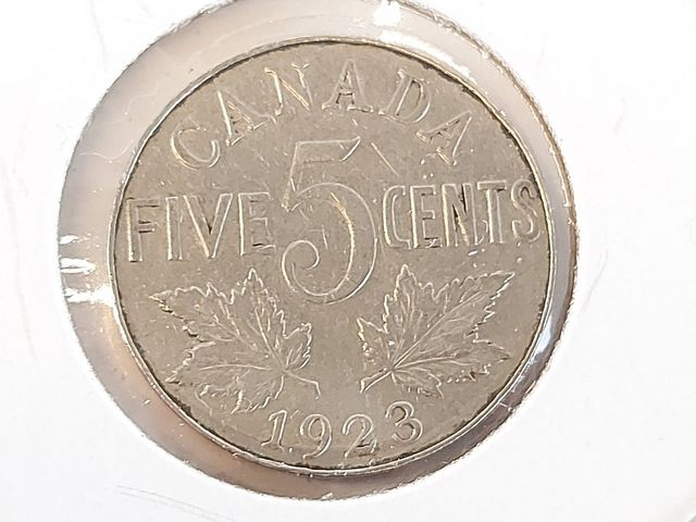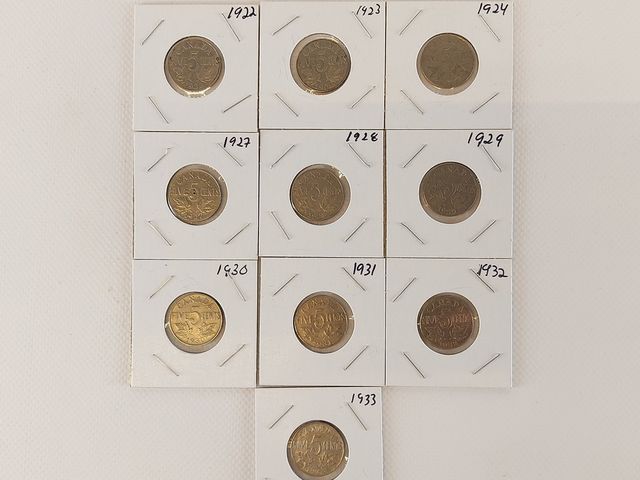 Lot de pièces de cinq sous canadiens anciens - 1922-23-24-27-28-29-30-31-32-33