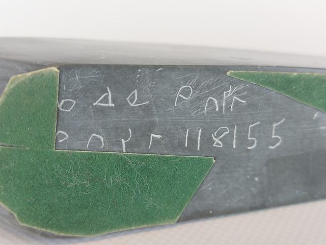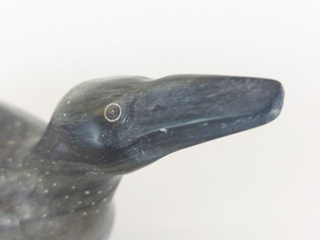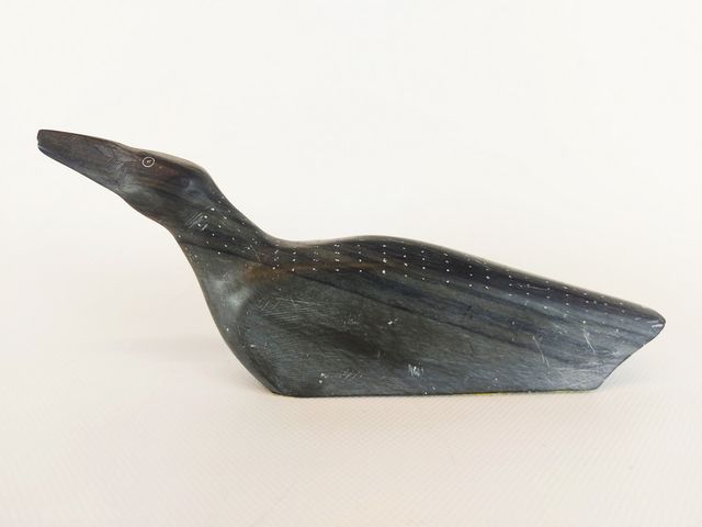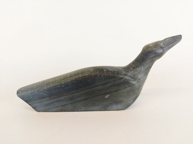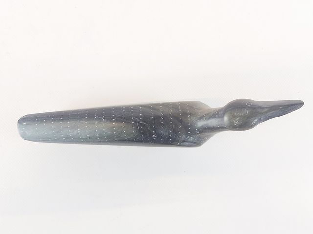 Lot # 122 - Sculpture inuit sur pierre à savon représentant un oiseau - 9 pouces de longueur - signée en inuktitut au dessous SOLD