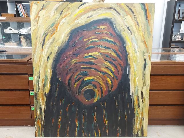 Lot # 100 - Louis BOUCHARD - acrylique et huile sur toile - titré Le Roc - 63x54 pouces  SOLD