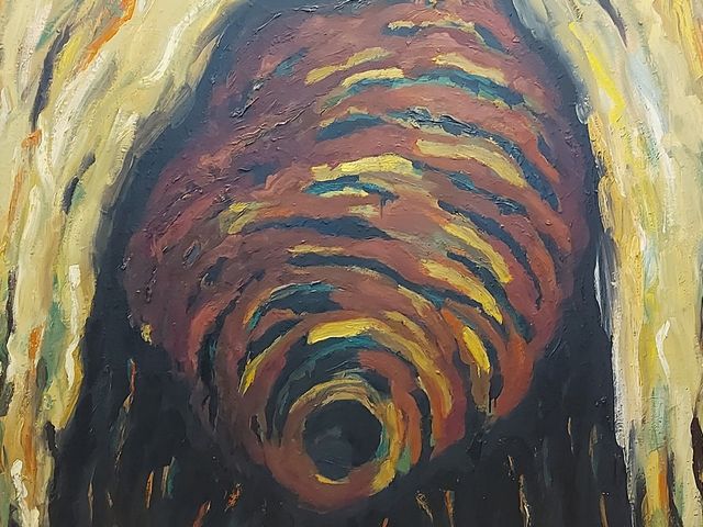 Louis BOUCHARD - acrylique et huile sur toile - titré Le Roc - 63x54 pouces
