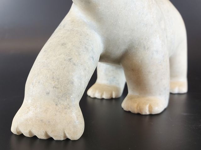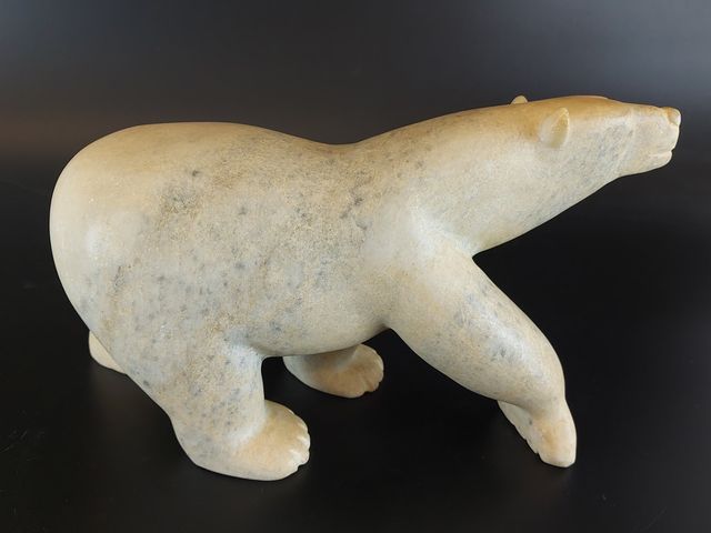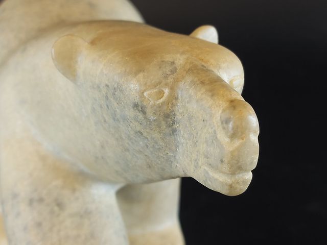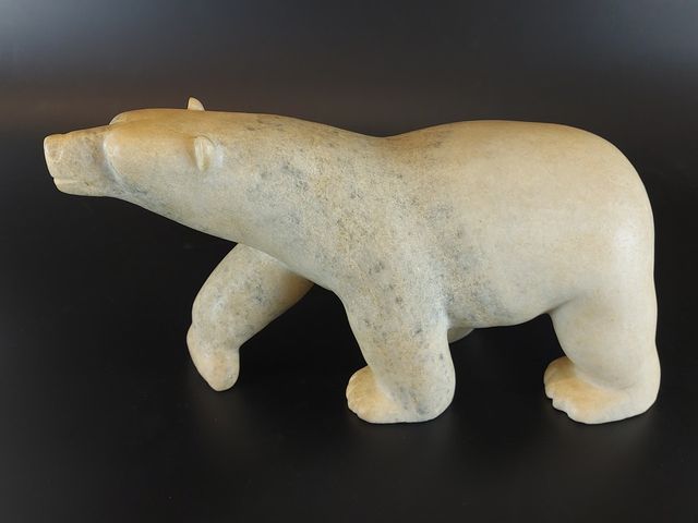 Lot # 28 - Sculpture exceptionnelle esquimaude - représentant un ours en marche flairant une proie - belle couleur rare - 12x6.5x4 pouces - pesant 10 livres - signé et daté SOLD