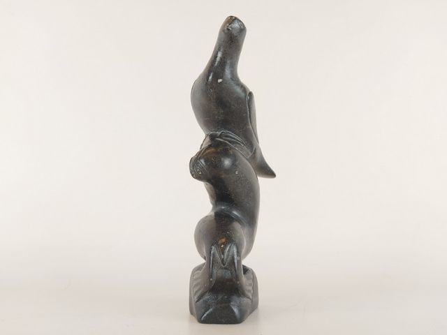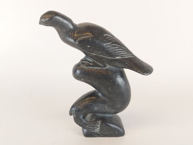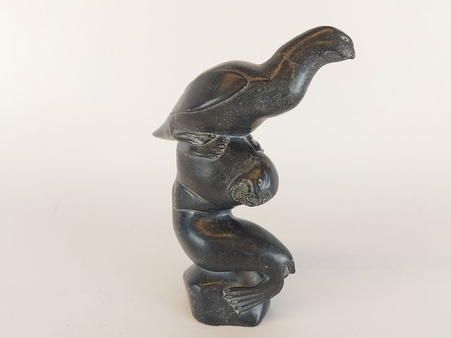 Lot # 20 - Sculpture sur pierre à savon inuit signée en dessous - 8.5 pouces de hauteur SOLD