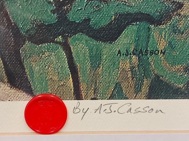 Lot # 10 - Impression sur papier reprenant une oeuvre de A. J. CASSON (groupe des sept) - avec sceau officiel de l'éditeur en cire - titrée et numérotée à la mine - 19x22 pouces SOLD