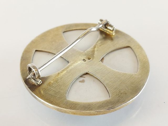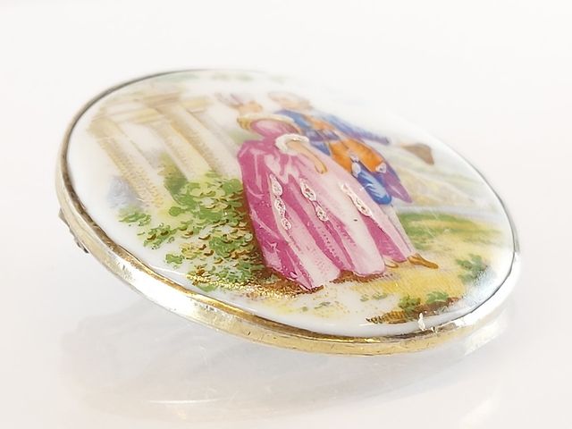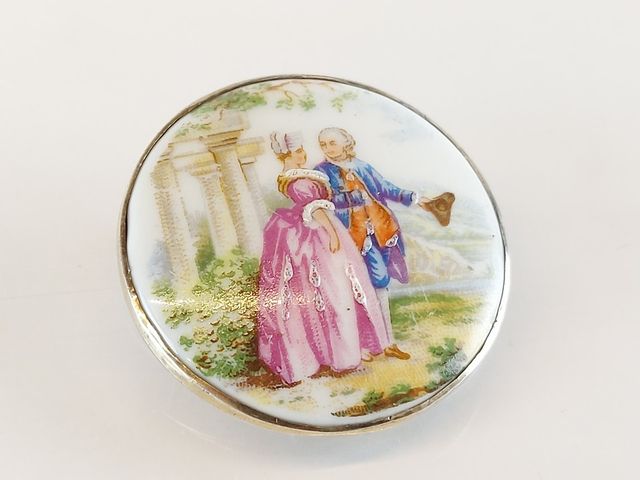 Peinture sur porcelaine de Limoges montée sur broche en argent - 1.5 pouce de diamètre