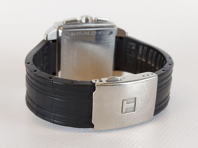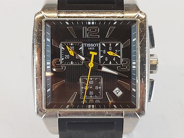Lot # 201 - Montre Tissot - avec date - chronographe - cristal en saphir - au quartz - fonctionnelle mais besoin d'une nouvelle batterie - 42.6mm avec la couronne signée SOLD
