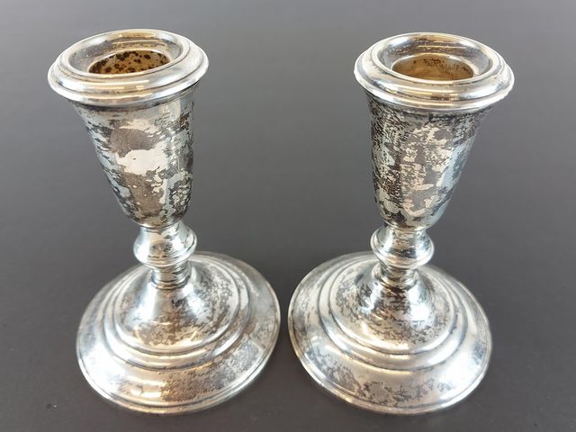 Lot # 217 - Paire de chandeliers en argent - Crown - 5 pouces de hauteur  SOLD