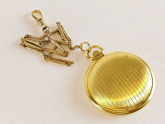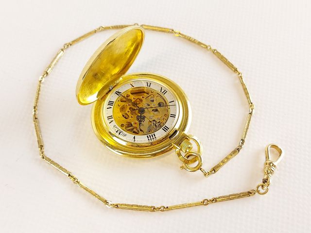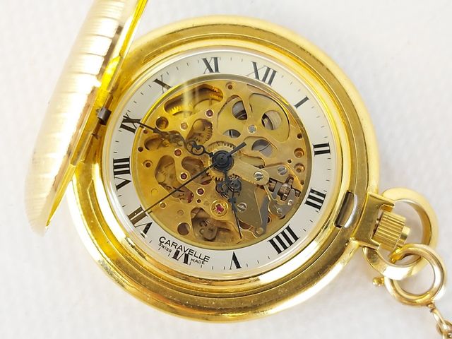 Lot # 232 - Montre de poche Caravelle - fabrication suisse - mouvement squelette - fonctionnelle - avec sa chaîne  SOLD