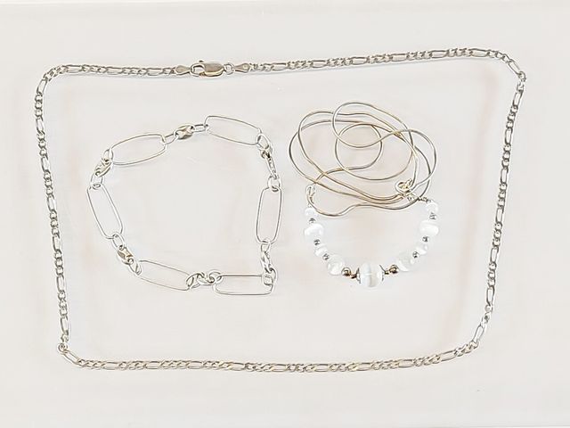 Lot # 185 - Lot de bijoux en argent - deux chaines de 18 pouces de longueur et un bracelet de 8 pouces de longueur SOLD