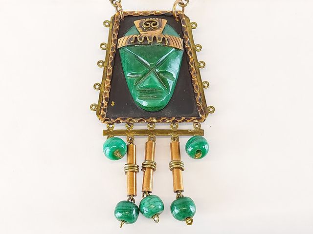 Lot # 230 - Collier en cuivre avec onyx - pendentif mesurant 4 pouces et la chaine 26 pouces  SOLD
