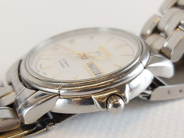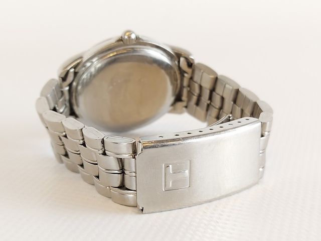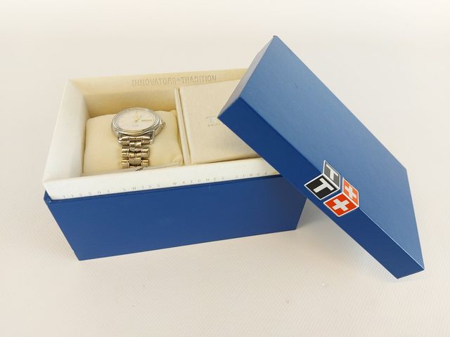 Montre Tissot automatique - fabrication suisse - avec date et jour - dans sa boite d'origine avec document et mailles additionnelles - 38.4mm avec la couronne signée - fonctionnelle