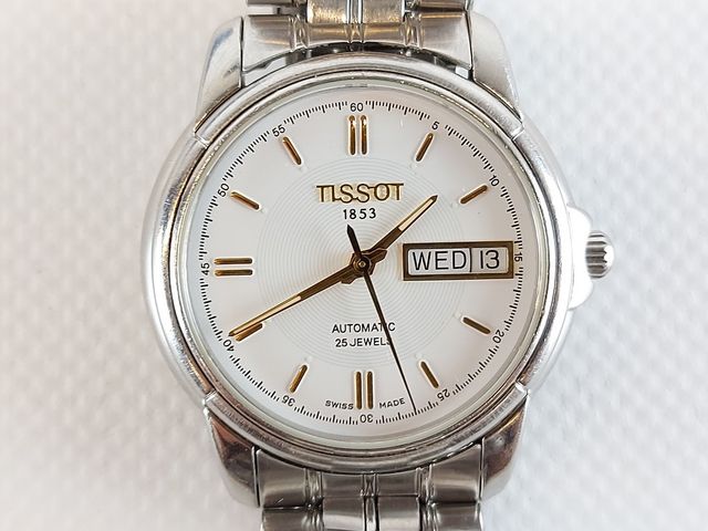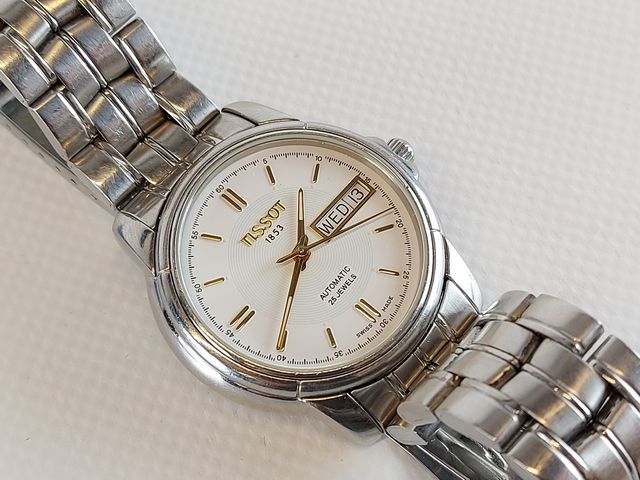 Lot # 171 - Montre Tissot automatique - fabrication suisse - avec date et jour - dans sa boite d'origine avec document et mailles additionnelles - 38.4mm avec la couronne signée - fonctionnelle  SOLD