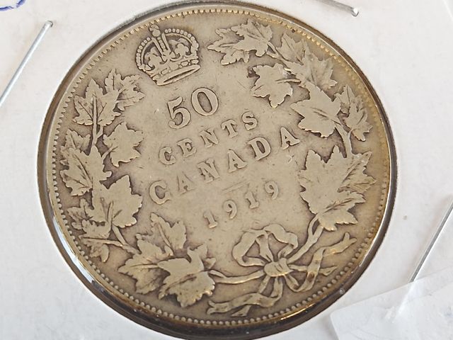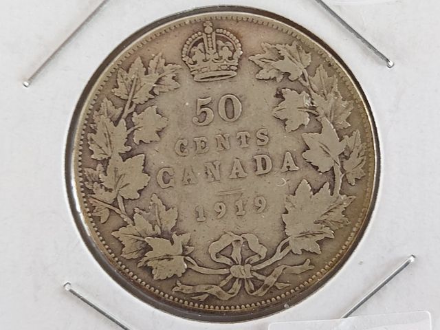 Lot # 260 - Pièce de cinquante sous en argent canadiens de 1919 SOLD