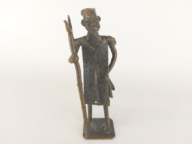 Bronze africain à la cire perdue - représentant un berger - 8 pouces de hauteur