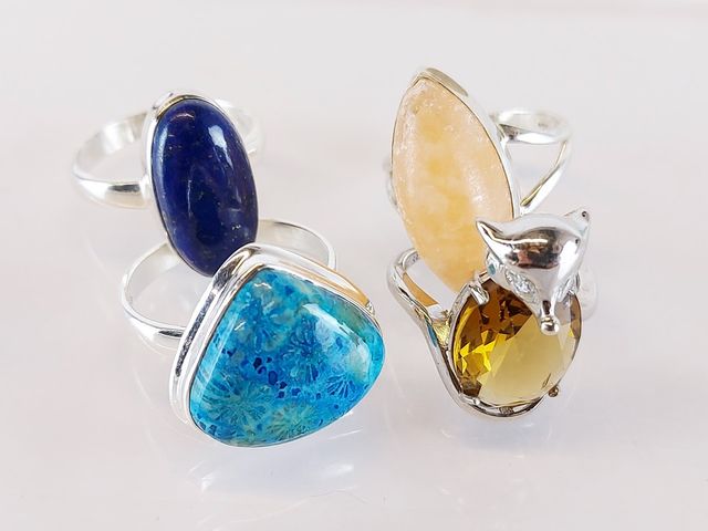 Lot de 4 bagues en argent avec pierre - taille 10.5 - 8.25 - 7.25 - 9.5