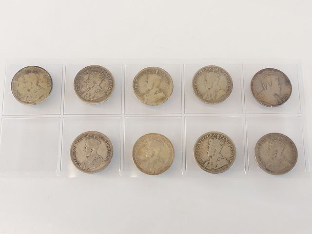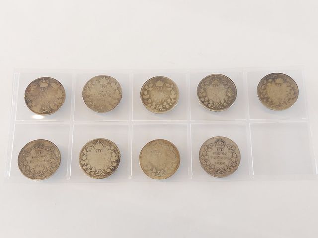 Lot # 85 - Lot de pièces de 10 sous canadiens en argent - 1910 - 12 - 13 - 16x2 - 17 - 18 - 32 - 36 SOLD