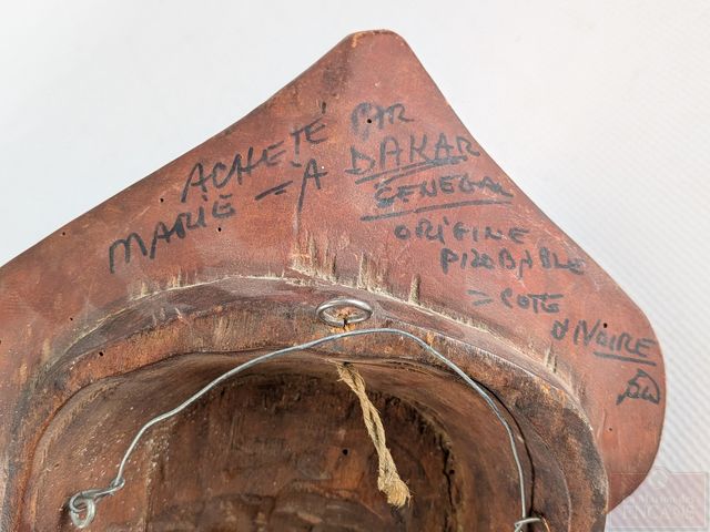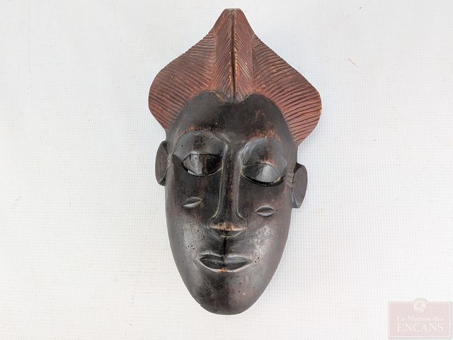 Lot # 2 - Masque africain Baoulé sculpté sur bois, provenant de la Côte-d'Ivoire et mesurant 11 pouces de hauteur
